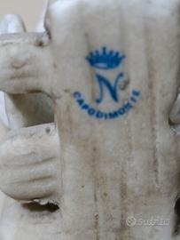 Statuetta in ceramica di Capodimonte, 8 x6 vintage, raffigurante 2 colombe bianche appollaiate su una panca decorata con fiori, simbolo d'amore, originale, da collezione.