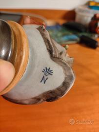 Statuetta con logo Capodimonte (vedi foto) raffigurante vecchietto con cappello (pennetta alpina) in ceramica/porcellana e base in metallo. Non presenta imperfezioni documentabili. Spedizione disponibile.
