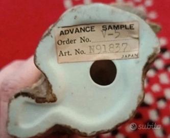 Statuetta ornamentale.Alta 15 cm. anni 70 circa.Rappresenta due uccelli, uno adulto e uno piccolo,su un tronco d'albero; dettagli molto curati. Sotto presenta la sua particolarità è un prototipo indicante l'ordine il numero dell'articolo e la provenienza