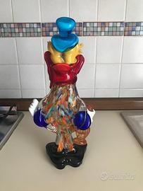 Statuetta decorativa in vetro artistico tipo Murano, lavorata a mano, raffigurante clown. Oggetto molto elegante e colorato, ideale come soprammobile, regalo o pezzo da collezione. Realizzata in vetro soffiato multicolore con dettagli applicati a caldo. Vendibile singolo o in lotto. Condizioni: lievemente sbeccato sull’occhio. Altezza circa: 22 cm