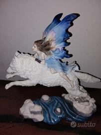 statuetta da collezione in resina, dipinta a mano: Nemesis Now Free Spirit - h. 23 cm., lunga 23 cm., colore: bianco, misura 27 cm. : (Simboleggia la libertà, la fata viene portata via dal suo compagno Lupo)