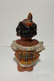 Statuetta in terracotta raffigurante una donna “dou dou “ , tipo di bambola tradizionale creola o caraibica . Presenta tratti somatici esagerati, come grandi labbra e capelli neri lucidi . Misure 15 cm altezza