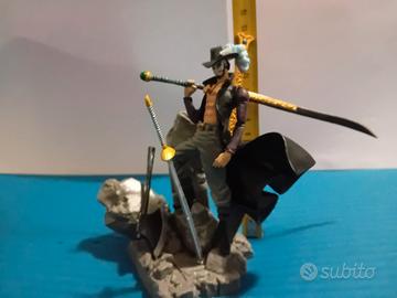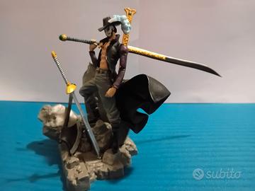 vendo statuetta da collezione del personaggio Dracule Mihawk della serie anime e manga One Piece. Altezza 14 cm circa, lunghezza 20 cm circa. scatola non presente, come da foto.