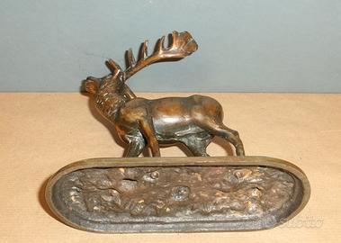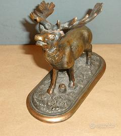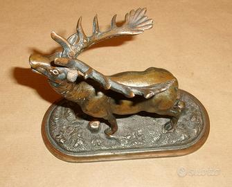 Statuetta in bronzo (soprammobile, fermacarte), del peso di 1004 gr. rappresentante un cervide, misure 16 cm. x 7 cm x 14 cm.
