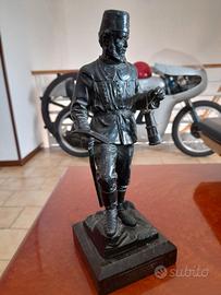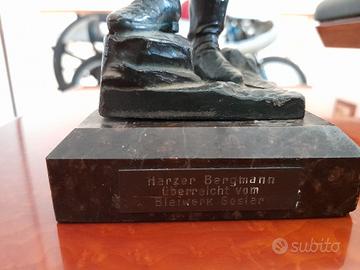 STATUETTA IN BRONZO, PROVENIENZA TEDESCA, RAFFIGURANTE UN MINATORE IN UNIFORME CON ATTREZZATURA, FUSIONE MASSICCIA, IN PIEDI SU UNA BASE DI MARMO, TARGA DI DEDICATA OPERA DI GOSLAR.