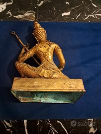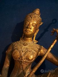 statuetta in bronzo asiatica , raffigurando una divinità che suona uno strumento musicale. misure 22cmx15cmx30cm