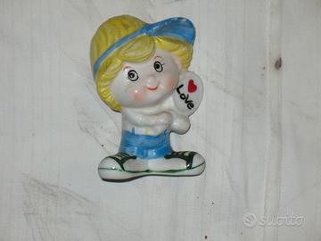 Soprammobile in ceramica vetrificata, dipinta a mano, raffigurante un bambino innamorato, delle dimensioni di 8,5 centimetri di altezza, made in Taiwan, vendo a interessato a 5 Euro + eventuale spedizione postale, pagamento tramite bonifico o direttamente in contanti. No spedizione con corrieri. Astenersi indecisi e perditempo.
