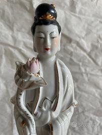 Statuetta in porcella cinese bianca. Dipinta a mano con motivi floreali e filo oro zecchino. Epoca ‘60 circa…