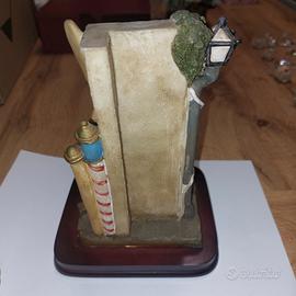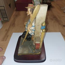 Questa statuetta in resina fa parte dellaD. W. Poly Collection. Rappresenta una figura maschile in abbigliamento contadino/marittimo, appoggiata a un bastone. È posizionata su una base in finto legno con una targhetta metallica che riporta il nome della collezione. Presenta dettagli dipinti a mano raffiguranti elementi come grappoli d'uva sullo sfondo.