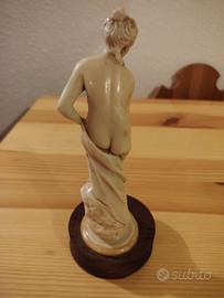 Statuetta in resina marmorizzata e base in legno Altezza 24cm