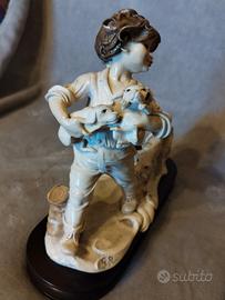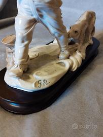 Questa statuetta raffigura un momento di pura innocenza e gioia. Un giovane fanciullo gioca spensieratamente con il suo fedele cagnolino, catturando un momento di affetto che ci ricorda l'importanza delle piccole cose nella vita. Realizzata con cura e attenzione ai dettagli, ogni linea del viso del bambino e ogni pelo del cane sono resi con straordinaria delicatezza, trasmettendo un senso di calore e amore.