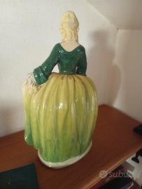 O dame di Versailles e devoti di Maria Antonietta, ecco statuina porcellana Paul’s Italia n°1480 h.22 cm! Dama bionda in abito verde/giallo floreale rococò, braccia aperte grazia, gonna ampia pizzi.Dettagli dipinti mano, base solida.