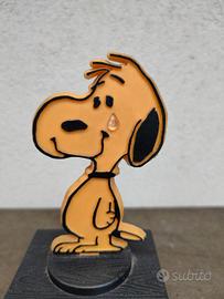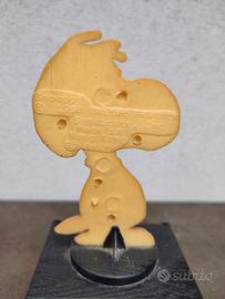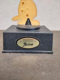 statuetta o trofeo vintage di Snoopy, un personaggio dei fumetti "Peanuts" di Charles M. Schulz. In particolare, questa statuetta è un oggetto da collezione prodotto da Aviva.