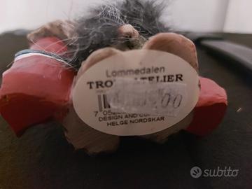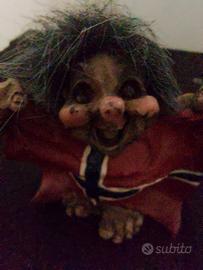 splendida e iconica statuina di Troll norvegese, un classico pezzo d'artigianato scandinavo proveniente dal rinomato Troll-Atelier di Lommedalen. Questo pezzo è stato disegnato dal famoso artista Helge Nordskar, noto per le sue creazioni espressive e dettagliate che richiamano il vero folklore norvegese. Il troll è raffigurato in una posa simpatica mentre avvolge orgogliosamente la bandiera della Norvegia. Dettagli dell'oggetto: • Designer: Helge Nordskar. • Origine: Made in Norway (Lommedalen). • Materiale: Resina artigianale con capelli in fibra sintetica/lana tipica. • Condizioni: Molto buone, come da foto. Presenta ancora l'etichetta originale sul fondo che ne certifica l'autenticità. • Particolarità: Perfetto per collezionisti di troll, amanti della Scandinavia o come pezzo d'arredamento unico e di carattere. I troll di Nordskar non sono semplici souvenir, ma piccoli pezzi di storia artigianale norvegese, ricercati per i loro volti grotteschi ma amichevoli.