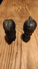 Statuette africane in legno di Ebano. Volto di donna e uomo. Altezza circa 18 cm.