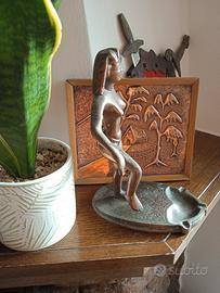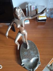 Si tratta di unposacenere vintage in metallo(bronzo)con una statuetta di ispirazione egizia.