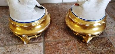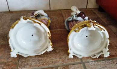 Realizzate in porcellana bisquit sullo stile di Jean Gille. Particolare lo strumento della damina: una ghironda.