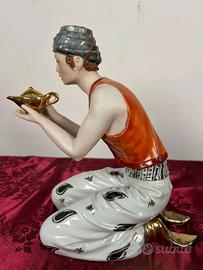 Scultura in porcellana firmata Mario Alparone è un vero capolavoro che trasporta lo spettatore nel mondo incantato di Aladino. Realizzata a metà del XIX secolo, questa affascinante opera d’arte misura 24 centimetri in altezza, 12 centimetri in larghezza e 20 centimetri in profondità, ed un peso di 1 chilo ,catturando l'essenza del racconto con una cura dei dettagli sorprendente.