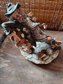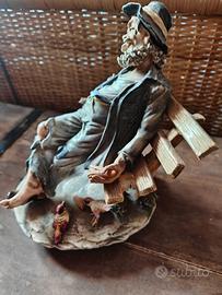 Vendesi scultura in porcellana artistica stile Capodimonte, interamente rifinita a mano. L'opera raffigura con grande realismo un anziano vagabondo seduto su una panchina in legno, circondato da piccoli uccellini.