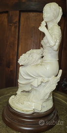 Statuina in porcellana su base in legno raffigurante dama con fiori - ottime condizioni