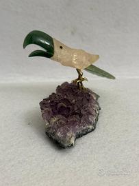 Bellissima statuina in quarzo rosa su ametista. In ottimo stato