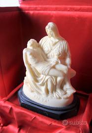 Statua in avorina rappresentante la celebre scultura della " Pietà di Michelangelo " che si trova nella Basilica di San Pietro in Roma.