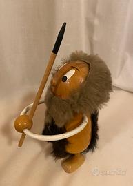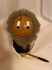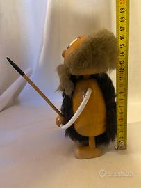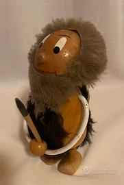 Bambola, pupazzo, statuetta, troll, figura in legno massello grandezza XL raffigurante un uomo ometto primitivo realizzato da Moroder Peter nella bottega di Ortisei (Bolzano) negli anni ‘70., Made in Italy. Questo uomo delle caverne o Neanderthal è stato realizzato e dipinto a mano, ha un bel viso e le braccia si muovono su e giù, testa rotonda e il corpo stilizzato, presenta inserti in pelliccia sintetica e una lancia tra le mani. È un oggetto da collezione con un design tipico del periodo. In ottime condizioni altezza 17 cm circa. Holzstatuette eines Urmenschen aus den 1970er Jahren