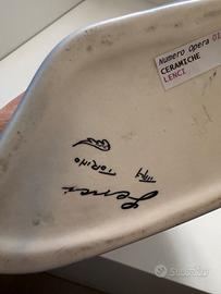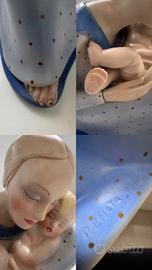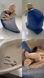 Statuina firmata Renata Ponti 1936 Produzione Lenci. Decorata con smalti semi lucidi. Cm 21x20x11 Pubblicata su Allemandi “ le ceramiche Lenci” fig 717 pag.222 Presenta piccola scheggiatura sulla base e un piccolo buco dietro la testa. Difetti non strutturali A richiesta invio foto più dettagliate