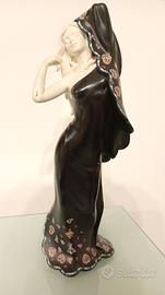 Vendo splendida scultura originale della prestigiosa casa spagnola Nadal Studio (Valencia), appartenente alla rinomata collezione "Sirene's". L'opera, intitolata "Sensualidad", è stata disegnata dall'artista Valiente. È caratterizzata da linee eleganti e sinuose, con un raffinato abito nero lucido arricchito da decorazioni a mosaico multicolore sulla base, ispirate allo stile di Gaudí. Dettagli tecnici e autenticità: Altezza: 33 cm Peso: 1214 grammi (materiale solido, polvere di marmo/resina di alta qualità) Edizione: Serie numerata (Esemplare n. 0370) Marchio: Firma Nadal e Designer Valiente incisi sul fondo. Condizioni: Buone, lievi segni di usura, come da foto. Pezzo d'arredamento molto elegante, ideale per amanti del design spagnolo e collezionisti di figure in porcellana/resina (stile simile a Lladró o Tengra). Spedizione: Disponibile con TuttoSubito (imballaggio accuratissimo) o ritiro a mano in zona Roma, Napoli o Salerno.