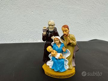 Statuina sacra famiglia con padre Pio in plastica alta 9 cm, larga 6 cm