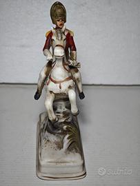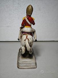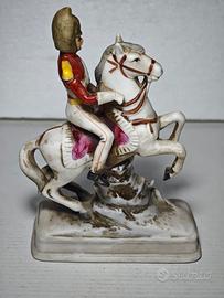 Statuina porcellana Capodimonte ufficiale napoleonico su cavallo rampante 16x11x5cm vintage ottima qualità e ottime condizioni prima metà '900
