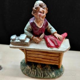 statuina di un macellaio (o salumiere) classico personaggio per il presepe alta circa 10,5 cm. Caratteristiche del Prodotto: Soggetto: Un artigiano intento a tagliare della carne su un banco da lavoro in legno. Materiale: Spesso queste figure vintage sono realizzate in resina o pasta di legno, materiali tipici della tradizione artigianale italiana. Produttore: Lo stile è coerente con marchi storici come Euromarchi o Fontanini, noti per le loro statuine dipinte a mano. controlla gli altri miei annunci per sfruttare la spedizione unica. Grazie.