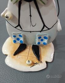 Statuina vintage di un Clown realizzata in porcellana da Zampiva. Un pezzo da collezione unico. - Design dettagliato del clown con cappello blu e papillon a righe. - Racchetta da tennis e pallina inclusi. - Base decorativa con elementi che richiamano il gioco. Oggetto da collezione, Made in Italy, firmato ed in perfetto stato conservativo!