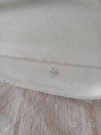Splendida e tenera scultura vintage in pregiata porcellana biscuit (opaca), finemente lavorata e dipinta a mano con colori tenui e naturali. La scena ritrae un'affettuosa immagine rurale: un nonno seduto su una staccionata insieme a due bambini, mentre si prendono cura di piccoli coniglietti. Un pezzo ricco di dettagli minuziosi (carote, venature del legno, espressioni dei volti) perfetto per collezionisti o come elegante complemento d'arredo d'epoca. Caratteristiche tecniche: Materiale: Porcellana Biscuit originale. Marchio: Corona impressa sulla base (visibile in foto), garanzia di manifattura artigianale italiana. Dimensioni: Altezza 16 cm | Larghezza 15 cm | Profondità 8 cm. Epoca: Risalente agli anni '70/'80. Condizioni: Ottime, ben e conservato. #Capodimonte #PorcellanaBiscuit #Vintage #Anni70 #SculturaItaliana #Antiquariato #Collezionismo #NonnoEBambini #StatuinaHandmade #ArteItaliana #ShabbyChic #ArredoCasa #IdeeRegalo #PorcellanaDipintaAMano #StileCapodimonte