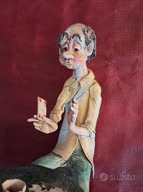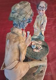 Simpatica e originale composizione in ceramica rappresentante due giocatori di carte seduti davanti ad un tavolo con fiasco e bicchieri. lLa composizione è firmata dall'autore nel basamento. L'oggetto, che risale agli anni 70/80, del secolo scorso è stato ereditato e si presta per essere esposto in una taverna, in un bar o enoteca. Le misure sono cm.25×25x15. Qualche imperfezione dovuta alla vetusta' che non pregiudica la bellezza della composizione