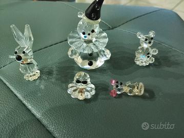 Set di statuine in cristallo raffiguranti simpatici animaletti e un Pierrot. - Realizzate in cristallo trasparente. - Dettagli curati e finiture brillanti. - Ideali per collezionisti o come decorazione. Dimensioni variabili dagli 8 ai 3 cm