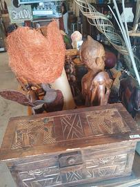 vendesi lotto di statuine scatole utensili lampada genere indiano africano etnico.