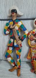 statuine in ceramica coloratissima una rappresenta la famosa maschera di Arlecchino e una un mexicano prezzo per entrambi