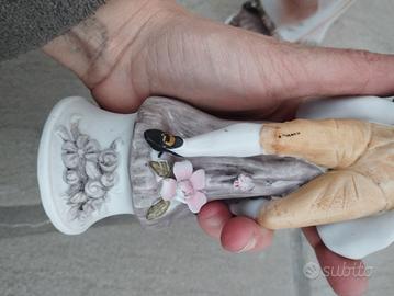 Vendo 3 statuine in pircellana simil Capodimonte ma non marchiate, quella in bianco e blú e perfetta e misura 15,5, le 2 a colori hanno delle piccole rotture (vedi foto) e misurano 20 cm. Prezzo per tutto 5€ ritiro a Gruaro. Non spedisco