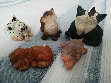 STATUINE IN RESINA PER COLEZIONISTI "ARTEFICE" DECORATE A MANO. Numero 16 pezzi di animali varie razze in resina decorati a mano nel dettaglio: N° 2 gatti, N° 2 cani, N° 2 rane, N° 2 papere, N° 2 conigli, N° 2 maialini (inclusi nell'immagine di gruppo), N° 1 lumaca, N° 1 ippopotamo, N° 1 topolino, N° 1 pulcino giallo.