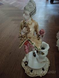 Statuine Lavorazione Bassano CON Porta fiori la Damina ha la mano danneggiata ma il pezzo si può incollare vedi foto