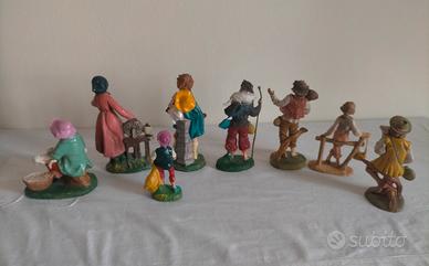 Lotto di 8 statuine per presepe vintage, altezza massima cm 14,5 cm. I personaggi sono realizzati in plastica/resina di alta qualità, tipica della produzione italiana anni '70/'80