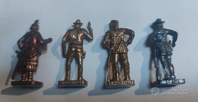 Quattro mini riproduzioni in lega di metallo, di Marco Polo, Bat Masterson, Davy Crockett e Kit Carson. Altezza 4 cm, in ottime condizioni. Da collezione.