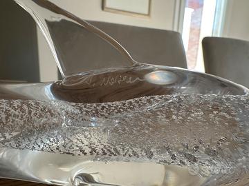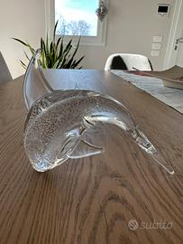 Si tratta di due soggetti eleganti e decorativi: un pinguino stilizzato e un delfino in movimento, entrambi realizzati a mano con vetro trasparente e bollicine interne che catturano la luce in modo raffinato.