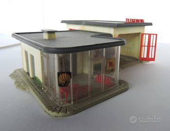 stazione di servizio, marca Faller mancano la scritta Shell sul tetto e gli accessori quali le pompe di benzina e l'insegna esterna.