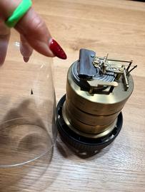 Stazione meteo termometro igrometro barometro in metallo ottonato con capsula in plastica trasparente con segnalatore anni 80 ..... marcato BARIGO ....