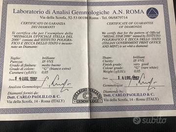 MEDAGLIA STELLA DEL 2000 in oro con diamante centrale