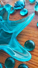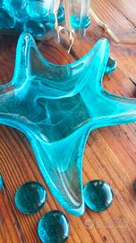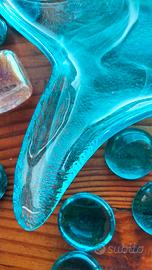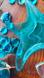 Meravigliosa stella marina concava in vetro tipo Murano, con venature marmoree bianche racchiuse all'interno. Si può usare in vari modi, ad esempio come svuotatasche, come posacenere, porta pot-pourri, ecc. Azzurro intenso è il suo fantastico colore, lucente e brillante, che grida estate, mare e vacanze. 🔹Misura 17x15,5cm Perfettamente integra.