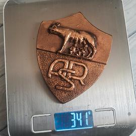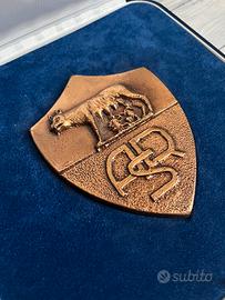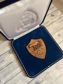 Stemma As Roma in bronzo pieno (peso circa 340 gr Ome da foto) con cofanetto blu, regalo del presidente Franco Sensi per il Natale del 98.