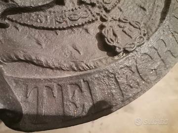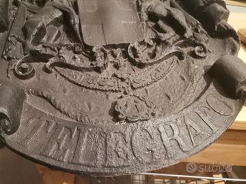 Vendo stemma del telegrafo del Regno d'Italia periodo 1870-1890, fusione in ghisa del peso di 25kg,munito di robusto maniglione per essere appeso,perfetto sopra il caminetto.Pezzo unico nel suo genere,un pezzo di storia d'Italia che durera' per sempre.Il prezzo di spedizione puo' variare in base alla distanza.